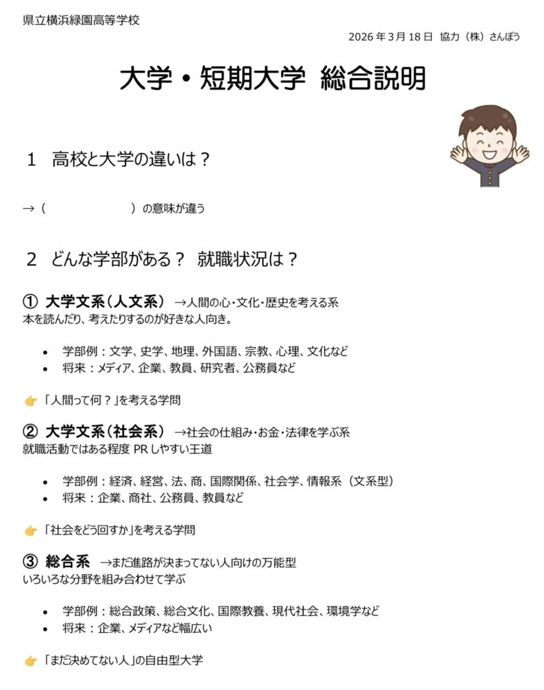 4月16日 進路フェスタイン神奈川ご参加のみなさんへ