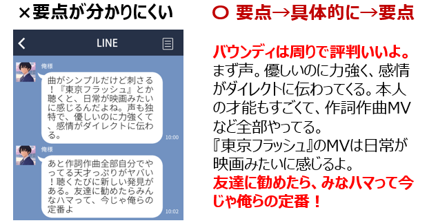 文章の基本的なテンプレは「要点→具体的に→要点」